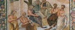E aí temos o símbolo de Zenão a respeito dessas duas artes: a mão aberta e a mão fechada, representando, respectivamente, a retórica e a dialética.